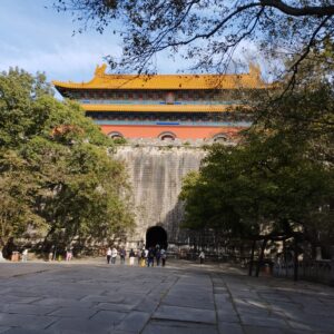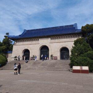 明孝陵参詣の後、すぐ近くの中山陵を参詣した。現代中国建国の父、孫文(中山)の陵墓だ。中華民国建国の最中(1926〜1929)に建設された明孝陵に負けない壮大なスケールの陵墓で、如何に中国人が孫文を尊敬しているかを感じる。建築物の瓦が青色で統一されており、皇帝の象徴である黄色と対比させているのが興味深い。参詣した月曜日がここの休日になっており、残念ながら陵墓の中まで入ることができなかった。