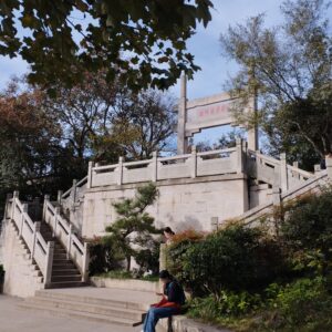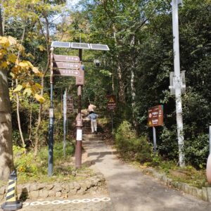 中山陵参詣の後、道端に掲示されている地図やスマホの百度地図を見ていると、明孝陵や中山陵が築かれている鐘山の上まで道が整備されているらしいことに気がついた。ちょっと風邪気味だが、一つ登ってみよう。簡単に昼食を済ませたあと、百度地図を頼りに登山を開始、登山口を通過。よく整備された道で、何とか上まで登れそうだ。