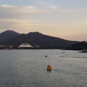 一旦ホテルに帰って少し休憩した後、再び市内散策に出た。ホテルから少し歩いた所に玄武湖公園があり、南京市民の憩いの場になっている。先ほど登った鐘山が公園からきれいに眺められた。